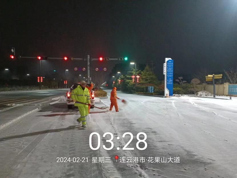 受寒潮影响,2月20日下午,港城普降“冰雪+冰粒”,投资公司第一时间启动恶劣天气应急处置预案,道路保洁、市政养护、后勤保障等战线的干部职工以雪为令,在重点区域、重点路段、坡道、桥梁、涵洞等结冰路段进行撒盐融雪融冰作业,全力以赴除冰雪、防事故、护平安,为市民群众出行一路“护航”。