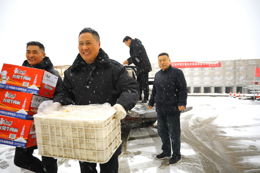 2月4日,港城遭遇暴雪寒潮极端天气,台北华茂公司广大劳动者仍然坚守在岗位上,为城市的正常运转默默奉献。为了表达对坚守在岗位一线职工的关心和敬意,公司领导傅健等慰问抗击冰雪一线职工。