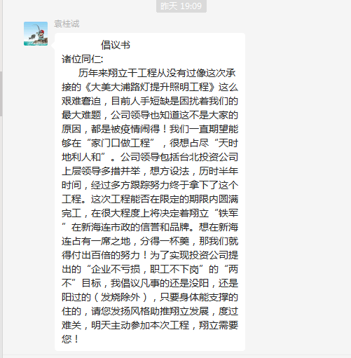 精兵强将,火速支援。疫情来势凶猛,很多人都难逃魔爪,造成翔立用人短缺,面临这种难题,翔立铁军经受住了考验。朱文江同志阳转阴后,火速到岗,第一时间带领大家继续奋战;老黄牛乔以成同志已经一个多星期每天吃住都在公司,就是为了自己能够健健康康接着干;袁桂诚同志负责安全管理,但当看到人员短缺,紧急上岗,一边督促着大家安全生产,一边手头上的活也没停下;丁祥生同志轻烧不下火线,每天吃点药准时到达现场......正是有了这些敬业的人,翔立才能一次次在困境中走出去,在投资公司党委的坚强领导下,翔立人将继续发扬铁军精神,昂扬“四再”创业精神,淬炼“四拼”工作作风,攻坚克难,为台北的发展拼尽每一份力!