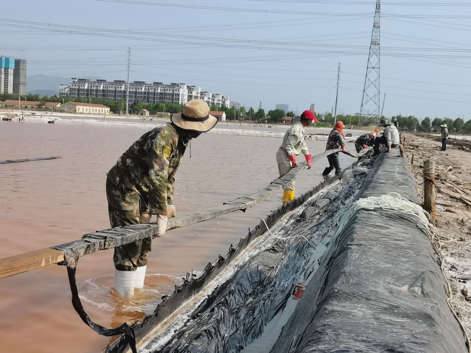 矿盐生产班组提前谋划原盐集运前的准备工作。2022年秋扒盐已经顺利落下帷幕,工人们利用收盐后的空隙对盐池板进行修整、整理收放系统以及将扒盐机械进行保养入库等等。同时,修整运盐主干道,地基较软处以钢板铺垫,确保运盐车辆安全通过。排查廪基周围高低压线路,在作业的同时坚守安全生产底线。等待天气转好,将立即进行原盐集运。