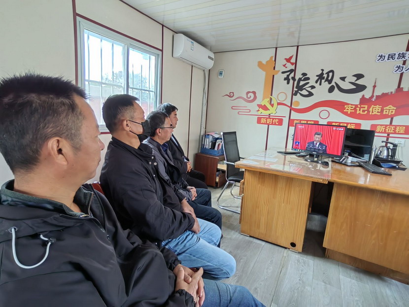 台北投资公司广大党员干部群众早早端坐在屏幕前,怀着激动的心情,收听收看党的二十大开幕会,认真聆听习近平总书记所作的报告。公司领导王德志、杨善革、张海宁、卞霄以及各部门负责人在机关廉政会堂集中收看,各基层单位广大党员或在支部,或通过视频会议,或在工作岗位休息间隙,收听收看开幕会盛况。
