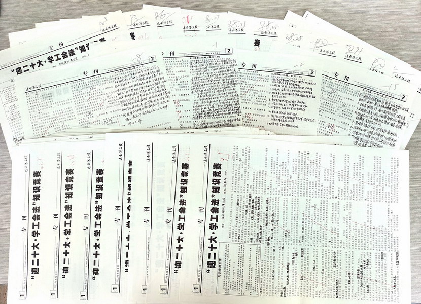 知识竞赛采取书面答题形式,共发放试卷40份,竞赛内容主要来自2022年1月1日施行的《中华人民共和国工会法》(修正案)、产改工作相关知识等。经半岛平台网站登录入口_半岛(中国)批阅,评选出一等奖3名、二等奖4名、三等奖3名,并得到半岛平台网站登录入口_半岛(中国)发放的读书卡进行奖励。