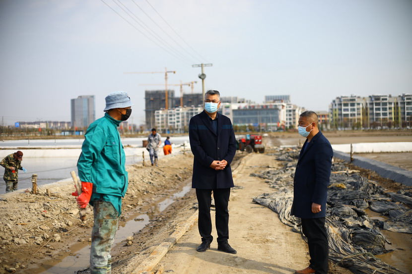 第一站来到海州湾公司昌圩班组。该班组4月1日矿卤灌池,目前第四块结晶池正在进卤,该公司三大组长带着各自队伍都来支援,一起给新灌结晶池更换新塑苫布,大家忙的不亦乐乎。王董事长首先慰问大家,新冠疫情暴发以来,海州湾公司广大员工克服困难,一边强化疫情防控,一边加班加点抓生产,虽然有的工作耽误了,但是矿卤灌池工作仍然赶在天时转好之前进行了。昨天进卤的结晶池底已经铺上了一层盐,看起来甚是喜人。昌圩班组负责人,老先进老党员朱春年同志看到王董事长来检查工作,他也非常高兴,和海州湾公司负责人刘天义一同聚拢过来,与董事长攀谈,汇报工作。最后王董事长强调,一定要抓紧灌池,抓紧更换新塑苫布,打好“矿卤复产”战,半岛平台网站登录入口_半岛(中国)基础产业牢固了,台北的发展也就稳固了。同时,也不要忘记抓好疫情防控工作,职工集体工作时要保持一米线距离,保证不扎堆。刘天义、朱春年代表职工表态,一定按照投资公司有关布置抓好各方面工作,一定拼命干,加油干,争当虎将打头阵,当好“台北保卫战”主攻队。