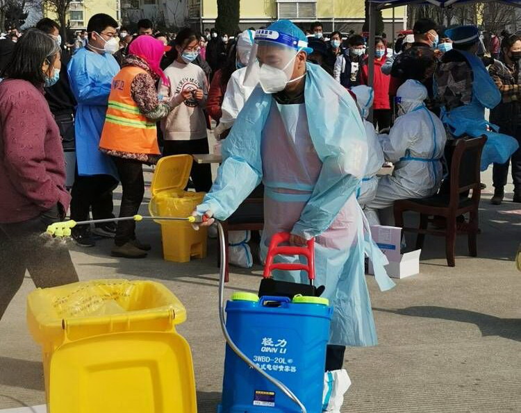 霍正钢,志愿者队伍的一员,也是这支志愿服务队伍中的中坚力量。他,心中有大爱,在海州湾党支部3月7日发出“驰援社区,共同抗疫”动员令后,他第一个站出来:“疫情就是命令,防控就是责任。身为党员,我理应模范带头,支持新冠肺炎疫情防控工作。”他不仅是这样说的,更是这样做的,在昌圩社区每一次的核酸检测中,他专挑“急、难、险、重”的活。比如消杀工作,这是一个体力活,需要背着足足有20公斤重的消毒液,来回不停的走动,不断的添加消毒液。有几次,核酸检测从早上8点一直持续到晚上8点,足足12个小时,而消杀工作的时长都达到14个小时,不仅是检测过程中,开始前和结束后的一小时都要消杀到位。14个小时下来,霍正钢同志穿着密不透风的防护服,里面的衣服湿了又干,干了又湿······。当大家看到他口唇干裂的都掉了皮,问他:“你是没有喝水吗?”“不能喝水,忍着吧,喝水就得上侧所,耽误时间,这波病毒隐匿性强,传播速度快,不能有一丝懈怠。”他憨厚的说着。