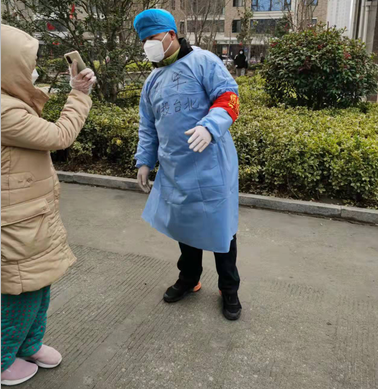 志愿者钱敏丽七点出门,穿上防护服,变身“大白”。查验健康码的时候总是会遇到各种情况,有不配合的,有出示古早截图的,有骂骂咧咧嫌烦的。钱敏丽总是不厌其烦地一遍遍解释,顺便普及一下疫情防控相关知识和法律常识。经过她耐心细致的解释,问题总会很快解决。中午时间紧张,蹲在路边吃盒饭是常态,但是看着小区人员生活秩序井然,脱下的防护服后的汗水才显得十分值得。