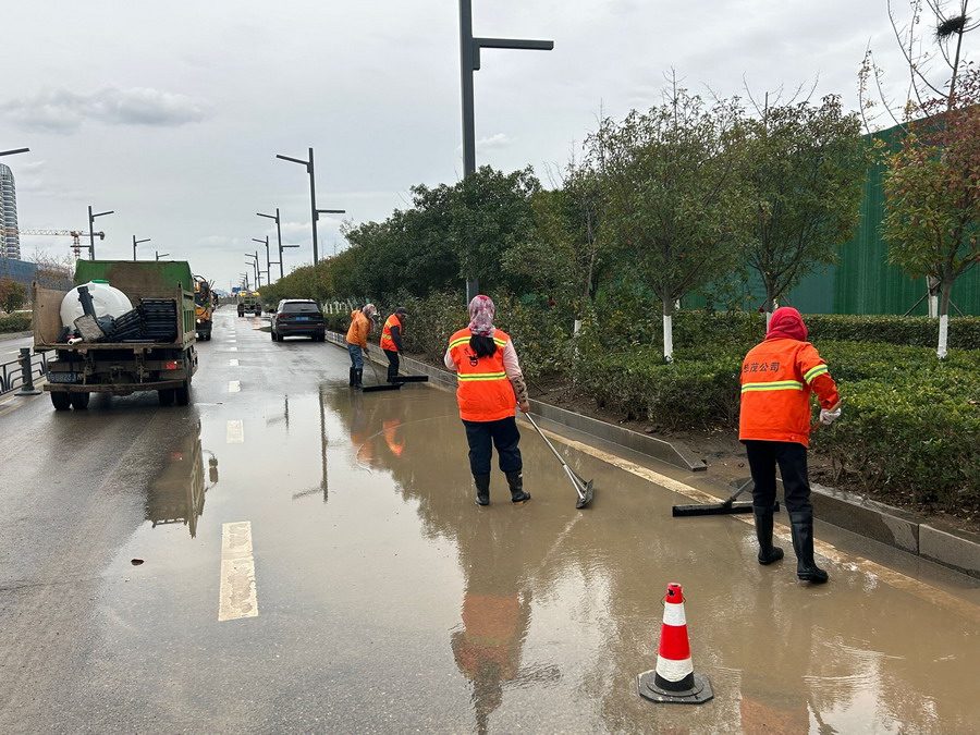 本次路线保障是今年以来最大规模任务,遵循“每个重要现场必有安全员,必有班组长,必有机械设备”的要求,8个保洁班组,1个垃圾清运班组,1个清扫车队,1辆铲车,一层管理人员共160名职工全部出动。长达3天的路线保障中,清理落叶3.7吨,车辆行驶里程超1500公里,覆盖防尘网近3000平方米,期间在开发区多次的突击检查中都能受到高度赞赏,为大合同签订再赢口碑。