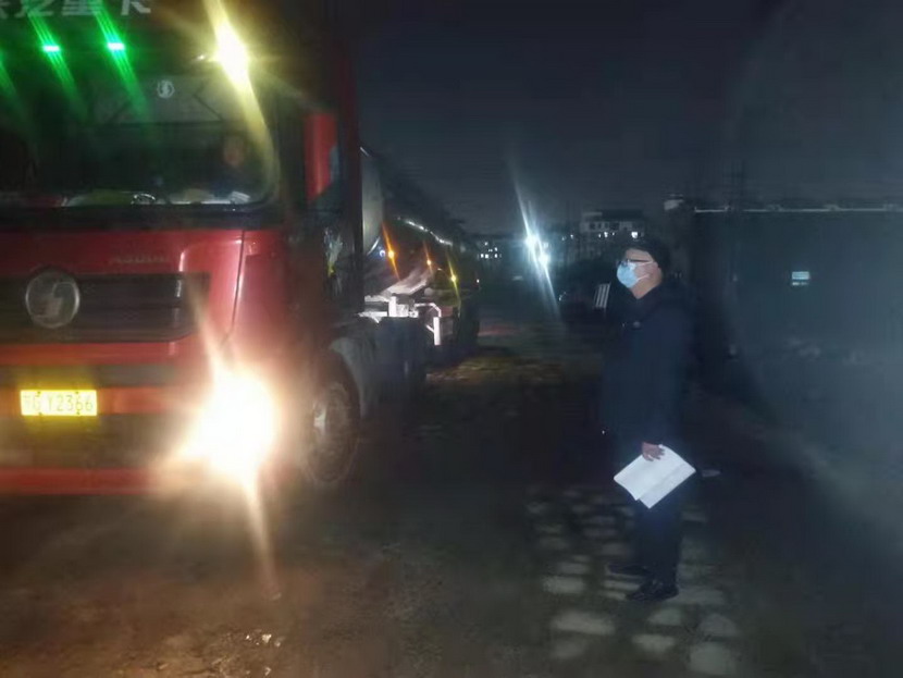在登记信息的过程中,公司纪检专员孙健细心的发现驾驶人员的不对劲,“师傅,您看起来很疲惫,是身体不舒服吗?”“小伙子观察真是细致,我只是太饿了,闭环管理规定驾驶员不准离车,所以我从盐城出来4个多小时还没有吃晚饭。”“师傅,您稍等一下,我去给您买份快餐,再给您烧壶热水!”当驾驶员吃完快餐,钙液车也装货结束,此时已是晚上9点40分,按照“方案”规定,“大白”程辉对车辆进行离场消杀,并拍摄相应消杀照片,上传系统。