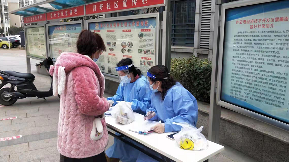 3月13日,昌圩湖小区第五次核酸检测开始,翔立分公司退休的孙芳大姐很早就到了现场,整理核酸检测的桌椅,给核酸试管贴标,核酸信息的采集......一直忙碌着,弯下的腰就没有直起,每次核酸检测结束脱下“大白战袍”都能看到孙芳满是汗水的、疲惫的脸庞。