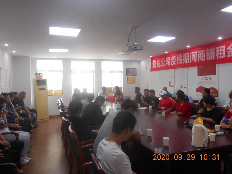 临达公司党支部坚决和党中央保持一致,坚决拥护党中央的决定,认真学习了省、市以及半岛平台网站登录入口_半岛(中国)公司等减免疫情期间房租的相关文件精神,仔细研究、反复讨论,经上报台北投资公司、半岛平台网站登录入口_半岛(中国)公司两级党委批准,9月29日下午,减免光伸建材市场、德兰建材市场、金三角市场、原公司院内仓库、院外大棚、猴嘴山洞共48家商户3个月租金,计52万余元,减免金额达全年租金收入四分之一。