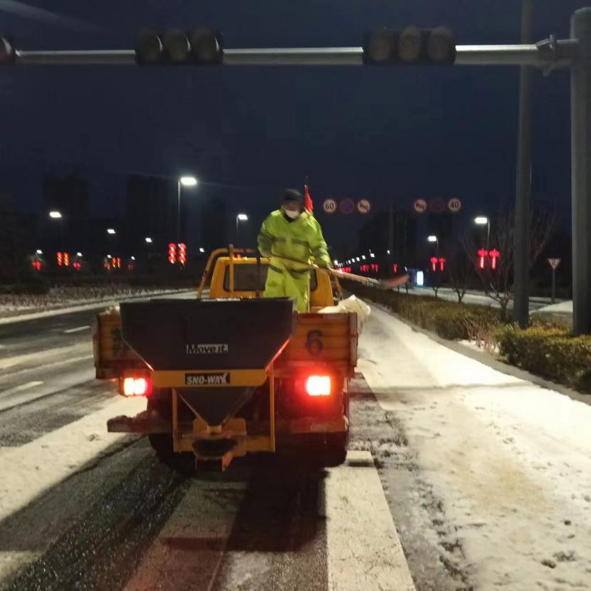 方式升级,效果显著。本次扫雪除冰,结合了2023年12月及2024年2月初的经验,由“先洒后铲”升级为“先铲后洒再铲”的作业方式,由3辆雪铲车进行多轮除雪,确保积雪厚度不超过3厘米,待积雪清除后,换上2台撒布机进行融雪剂覆盖,确保不产生较厚积冰,再由铲车进行深层除冰,保证路面不上冻。