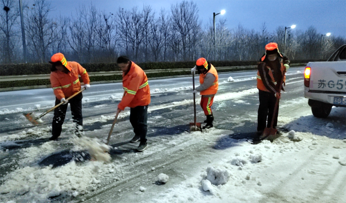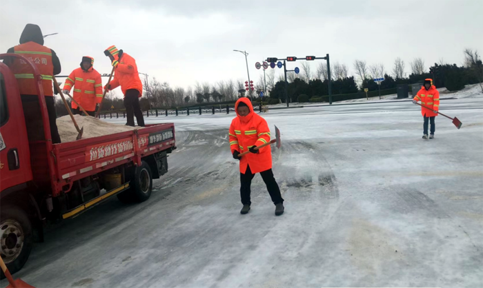 2月19日至21日,受持续大风寒潮天气影响,给徐圩新区、板桥工业园区各条道路盖上较厚冰层。为全力以赴扫雪除冰、排除隐患,悦升公司坚持“人动机动、雪停雪净”原则,落实好“三包三联”工作机制,实现道路通畅、安全出行,切实保障好广大群众正常生产生活秩序和生命财产安全。