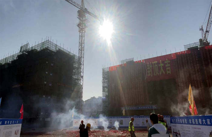 项目施工现场,彩旗迎风飘扬,六门礼炮齐鸣,礼花漫天飞舞,幸福家园改造工程举行封顶仪式。徐圩投资公司副总经理、建设单位项目负责人季东生向工程项目部表达了祝贺,肯定各协作单位及相关人员的倾力支持。并强调施工单位要总结经验,进一步加强现场质量和安全管理,有序推进工程进程。各参建单位表示,将严格按照设计方案,集中时间、精力、人力。全力推进后续工程建设,力争项目早日竣工交付使用,为业主打造高品质,高舒适度的住宅小区。(蒋超)