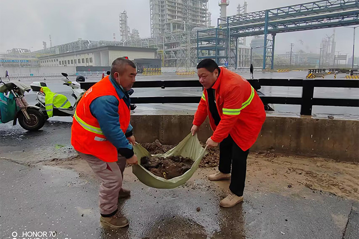 12月13日夜里,受北方冷空气影响,徐圩地区普降中雨。为保障石化园区冬季道路周边环境整洁靓丽,园区近10余名党员先锋无惧风雨,乐于奉献坚守道路最前沿,风雨中彰显党员敬业高尚风采。
