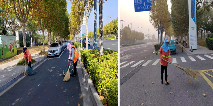 人工清扫争先恐后。该分公司结合四季度徐圩天气实况,强化降温大风天气各种落叶清扫力度。每天晨起7时左右准时赶赴各自工作辖区,徐圩核心区域女子班组18名保洁人员,两人一对、步调一致,拉网式对上海路,南京路等辅道进行清扫。每日清扫辅道路边各种树木落叶战线达1000余米,清理打包200余袋,转运车辆20余车,尽管大家手磨出了老茧,仍无怨无悔默默无闻忙作于道路两侧,她们用勤劳汗水保障徐圩新城环境整洁。