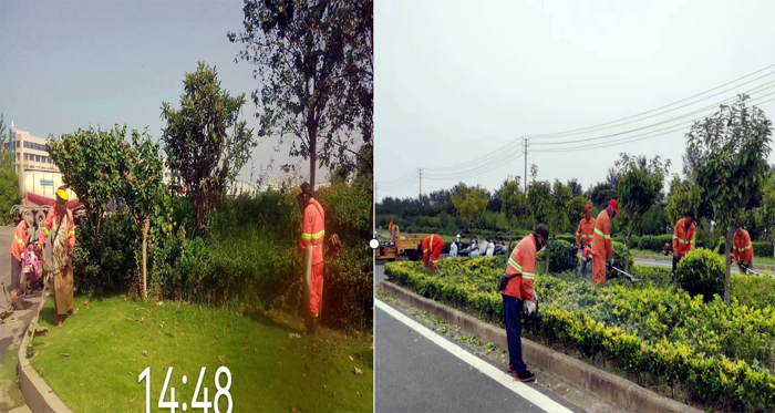 8月底,绿化养护班组兵分两路强化绿地草坪进行疏草、除杂等养护工作,对绿植进行清枯枝、病虫枝整形修剪,保持乔灌木的整体外形美观;集中力量加固树撑,清除杂草2万余平方米。