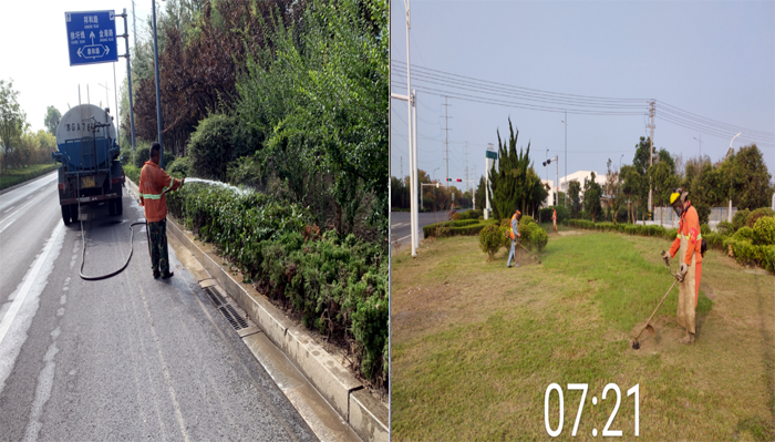 为确保绿化养护工作取得实效,该分公司以“管养结合,对症施策,综合防治”为原则,结合实际制定三阶段行动方案,即:“杂草清理,色带苗木修枝整形,绿植补水、施肥、病虫害防治三个阶段。