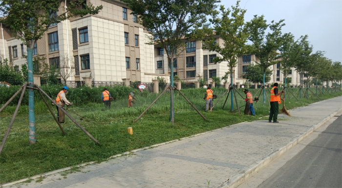 炎炎夏日,仍然阻挡不了绿化先锋倾情奉献的热情。早晨6点,大家就开始一天的工作了。修剪过程中采用人工、机械相结合的方式,对面积相对较大、地面相对平整且障碍少的草坪绿地,采用手推式草坪机进行修剪;对障碍物较多的绿化采用人工拔草的方式。骄阳似火,绿化卫士们干的热火朝天,身上的衣服干了湿、湿了干,累了就席地而坐,休息一会,然后继续工作。经过两天的持续奋战,共清理杂草5万平方米,出色的完成了此次杂草清理任务。他们用不辞辛苦、爱岗敬业的态度换来了新区优美的环境,也换来了不息的蓬勃朝气。(陈小东)